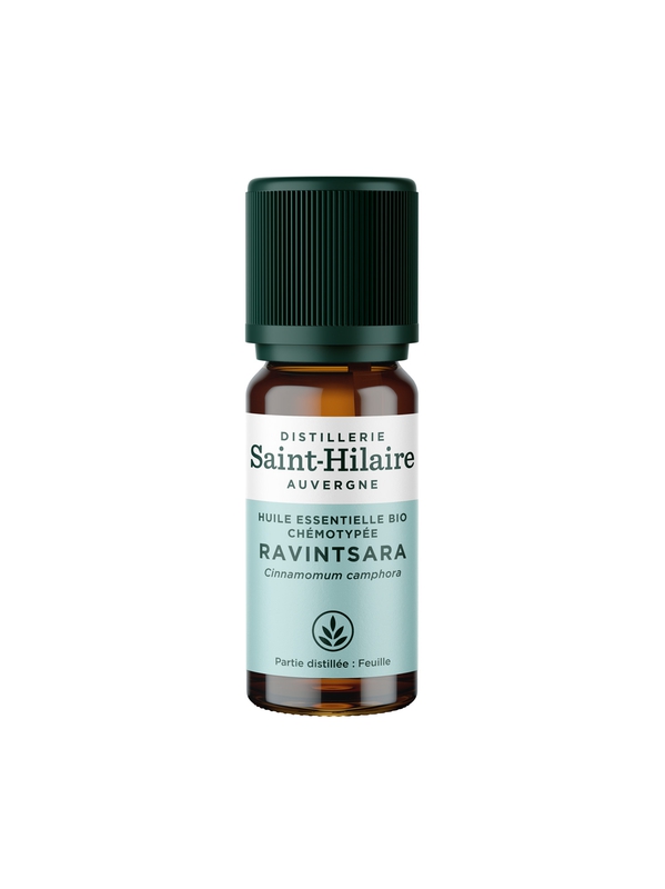 Cette huile essentielle de ravintsara possède de nombreuses propriétés, elle est très utilisée en aromathérapie car facile à utiliser au vu de son innocuité. Le ravintsara contient très peu de camphre. Son huile essentielle ne présente aucune toxicité aux doses et usages recommandés.